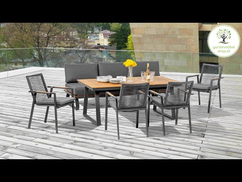 - Modern design: The combination of anthracite-colored aluminum and natural pine wood gives the sofa group an elegant and timeless look.